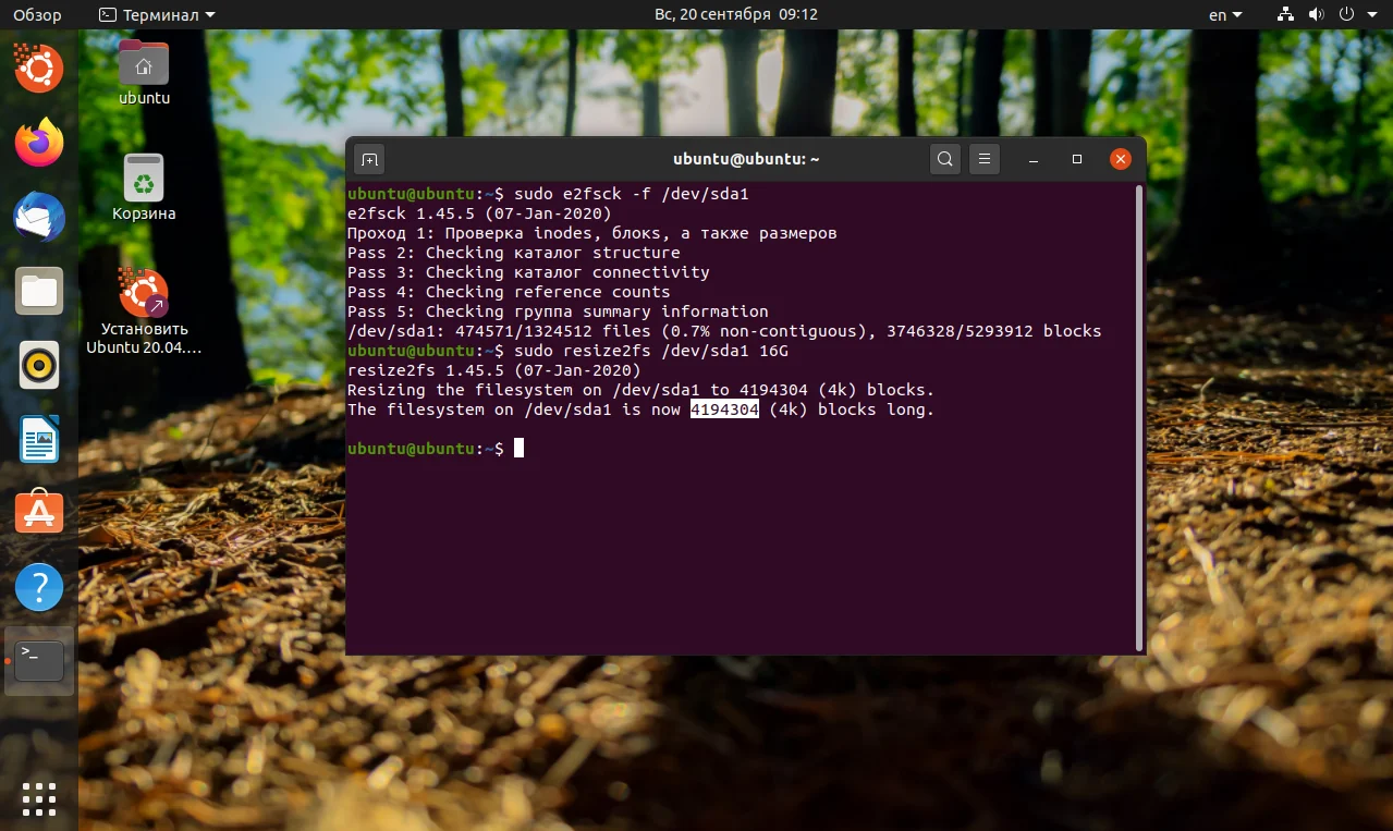 Размер можно указывать в килобайтах (K), мегабайтах (M) или гигабайтах (G). Теперь вы знаете как изменить размер Ext4. В выводе утилита вы увидите сколько теперь блоков занимает файловая система. Это число надо умножить на 4096 чтобы получить размер файловой системы в байтах. Цифра четыре взята потому что размер одного блока в Ext4 равняется четырём килобайтам. Например, в данном случае это будет 17179869184 байт или 16 гигабайт: