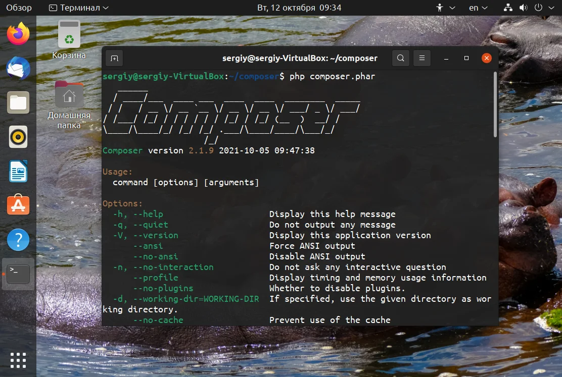 Затем запустите этот скрипт, чтобы создать файл composet.phar, который и будет использоваться для установки пакетов: