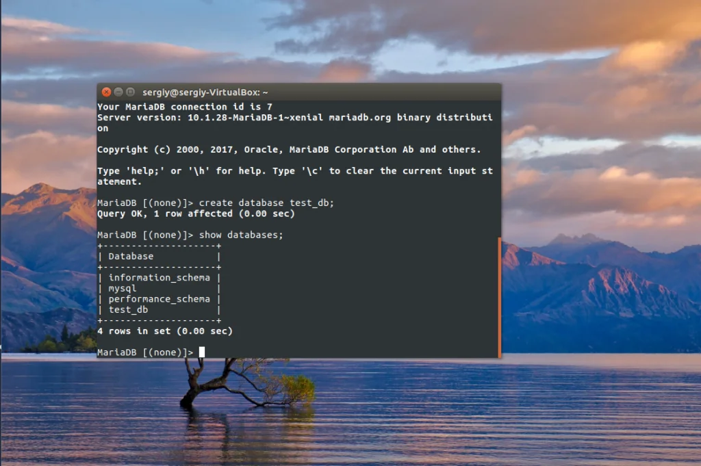 Когда обновление списка пакетов завершено, установите MariaDB командой: