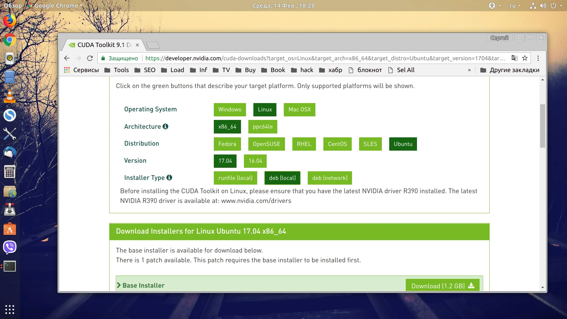 Только после этого появиться ссылка на установщик. Скачайте его, нажав кнопку Download 1.2 GB, и запустите установку с помощью dpkg: