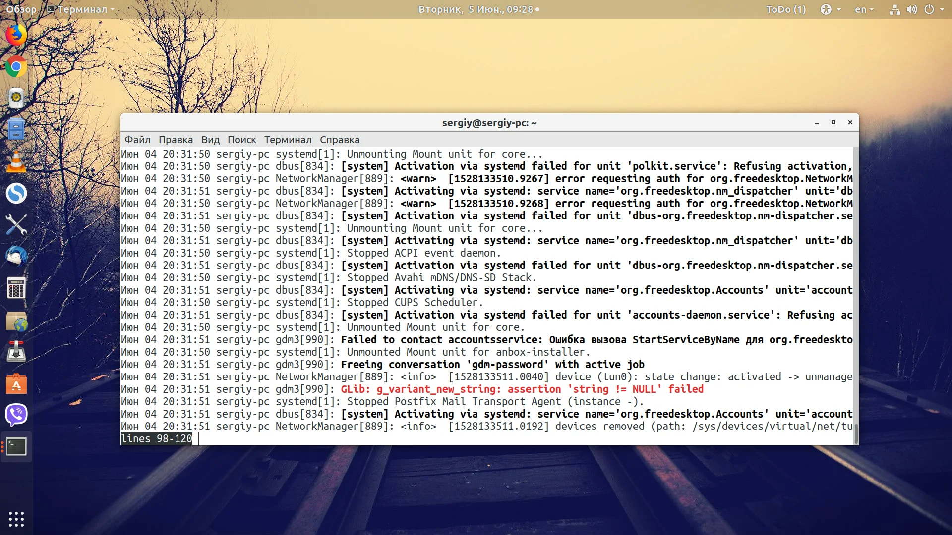 Затем перезагрузите компьютер. Сначала вы будете видеть полный лог загрузки, а при выключении вы увидите полный лог выключения. Преимущество этого пути в том, что вы увидите, на какой команде загрузка зависает, и сможете понять, куда копать дальше. Например, часто бывает, что Linux не может выключиться из-за ошибки "a stop job is running for Session c2 of user", т.е. мы не можем завершить сессию пользователя. Ещё выключению могут препятствовать примонтированные удалённые файловые системы.