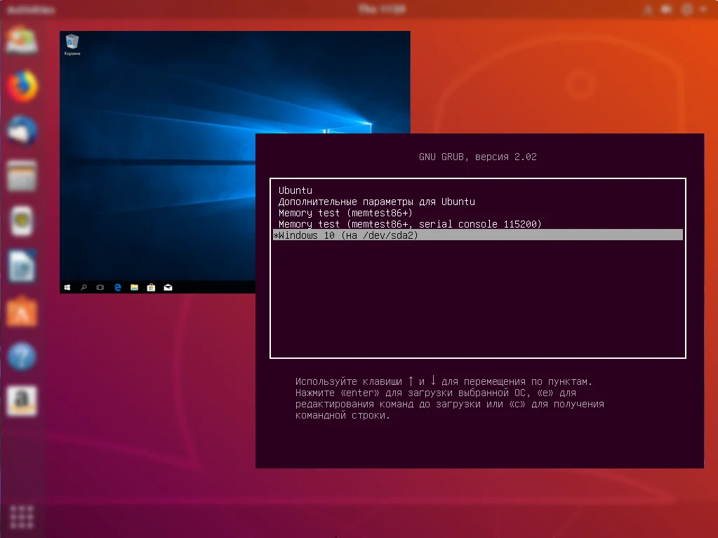 Теперь в качестве загрузчика будет использоваться Grub2 и в списке операционных систем отобразится Ubuntu и Windows, чего мы и добивались: