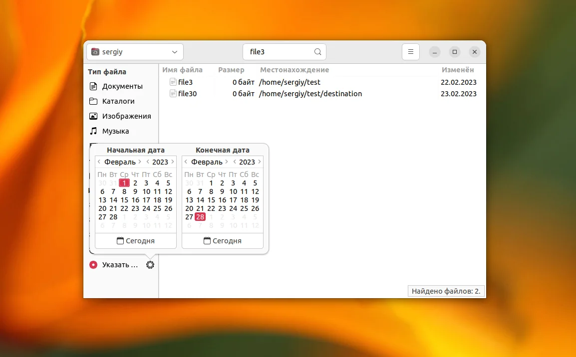 Это простая программа для поиска файлов. В ней можно выбрать тип файла для поиска, а также время его изменения. Программа ищет по всей файловой системе, поэтому это может занять довольно много времени. Она ищет не в реальном времени, а использует поисковый индекс mlocate. Вы можете установить Catfish в Ubuntu используя такую команду: