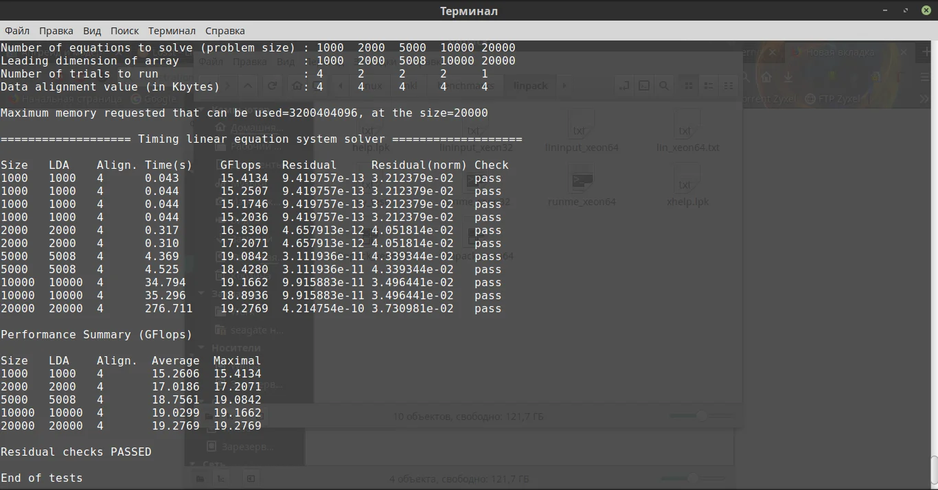 И собственно то, ради чего всё затевалось - тест Linpack cо скриптом: