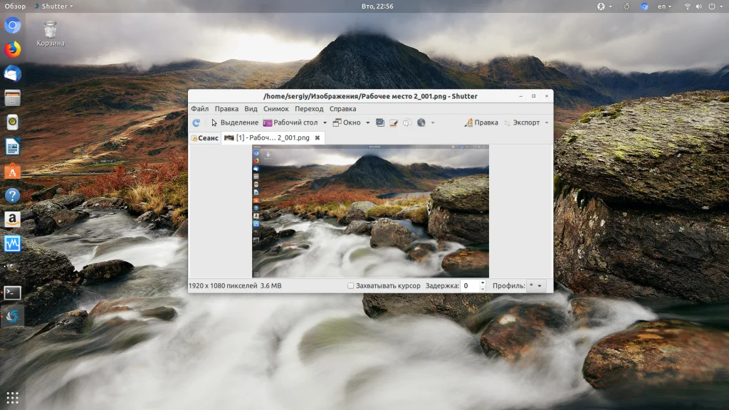 После установки Shutter вы сможете пользоваться программой для создания снимков экрана. Вы можете найти её в главном меню.